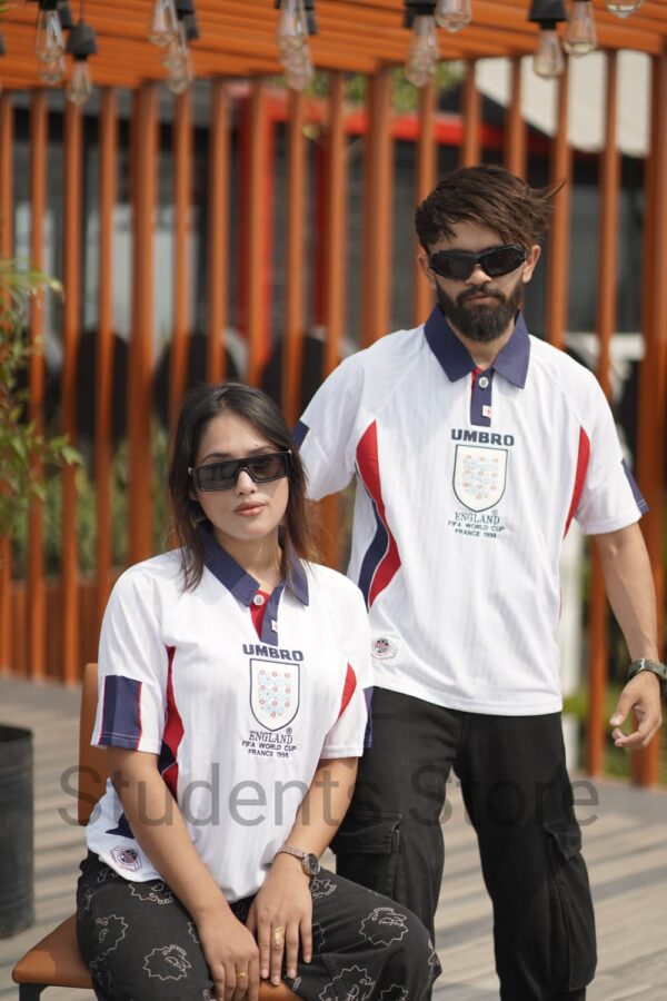 The England 1998 World Cup Home Retro Jersey is a nostalgic tribute to the kit worn by the England national football team during the 1998 FIFA World Cup in France. This classic design features a crisp white base, with the iconic navy blue collar and red trim, embodying the traditional English colors.