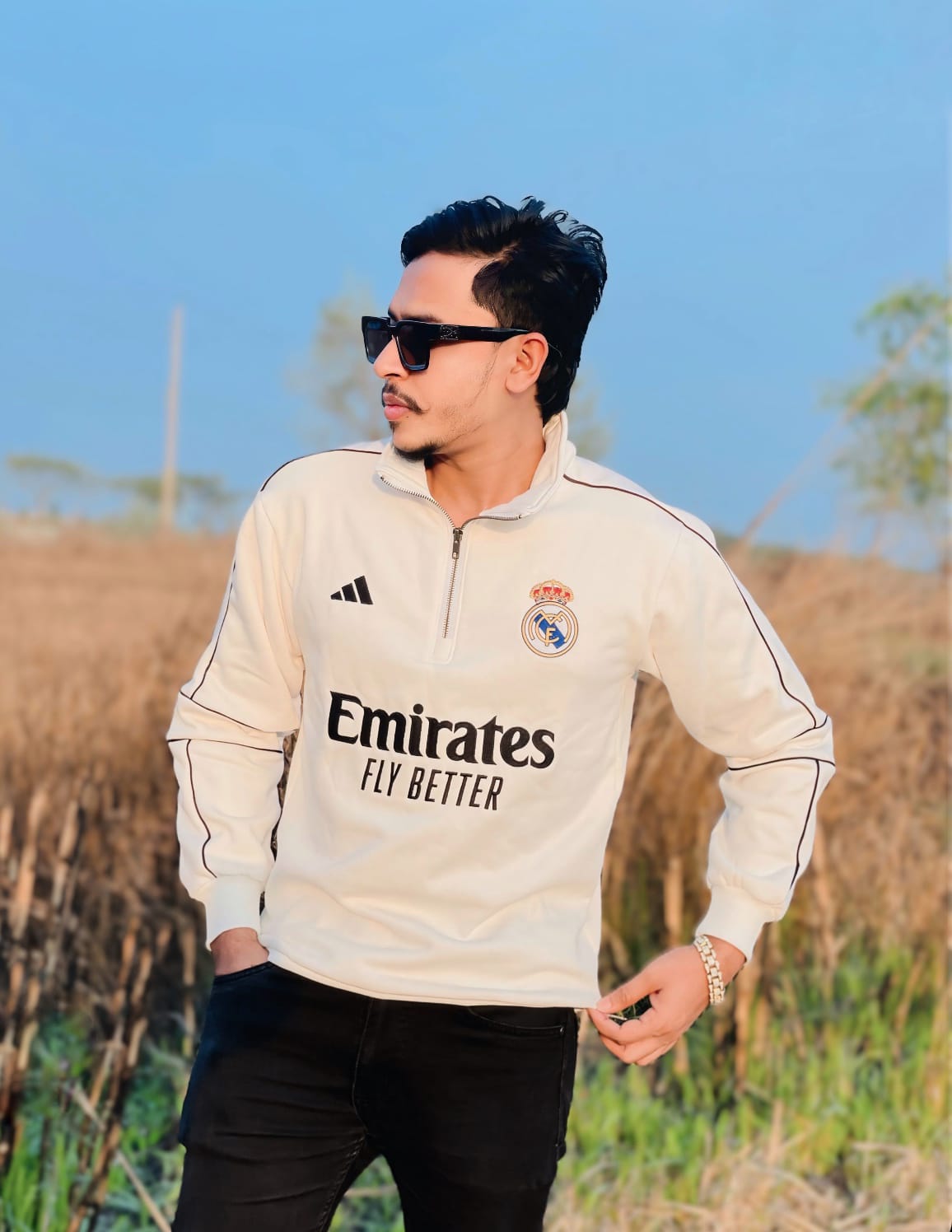 Emblems: It proudly displays the Real Madrid crest on the chest, along with the Adidas logo (indicating it is likely a replica or inspired garment).