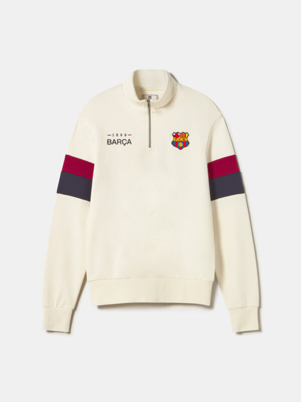 Detail of “1899” and “Barça” letters on one side and retro FC Barcelona shield embroidered on the other side.